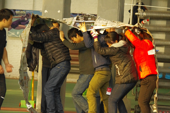 下午进行的是团体比赛项目。“心心相印-背夹球”项目进行的一波三折、精彩纷呈。大家不时为参赛